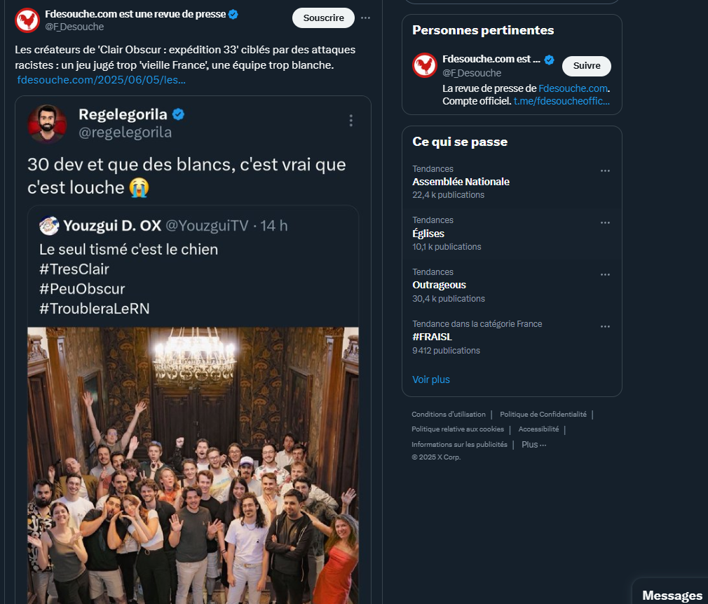 Ils ont mis 9/10 a Expedition 33 , un jeu NAZI et FACHO