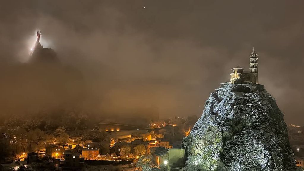 Un effet de lumière illuminant la statue de la Vierge au Puy En Velay, point de départ de pèlerinage pour Saint Jacques