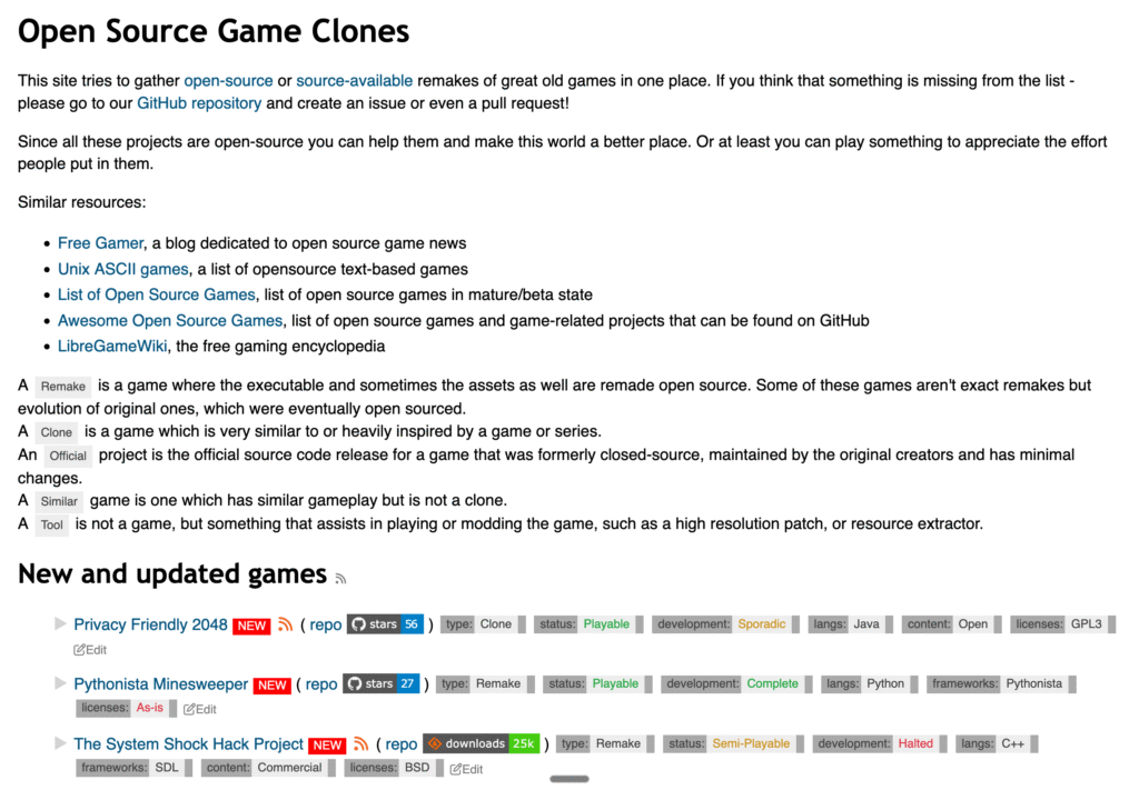 Le projet OSGameClones c’est un peu la caverne d’Ali Baba pour tous ceux qui ont grandi avec une manette dans les mains. Le site répertorie méticuleusement tous les remakes, clones et réimplémentations open source de jeux commerciaux, la plupart sont jouables sur des machines modernes, y compris Linux voir Steam Deck.