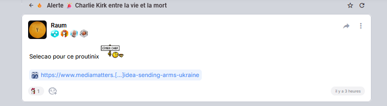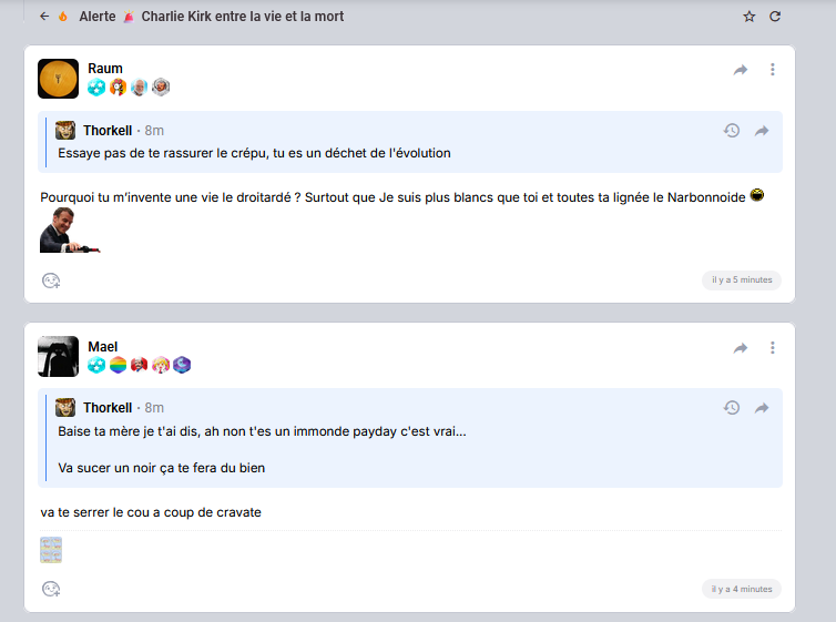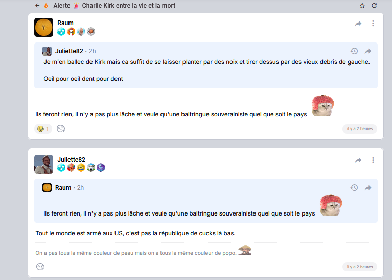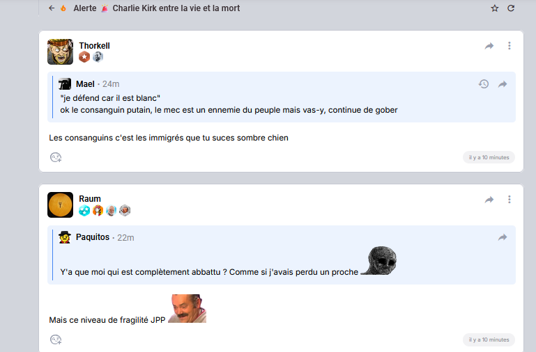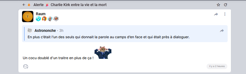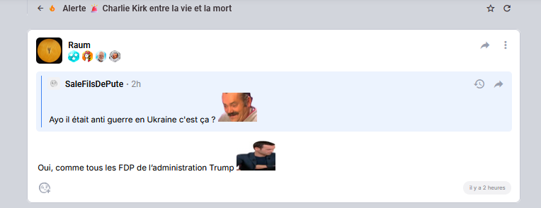 Sur ce forum t'as des gars comme Raum qui spam sur les gros topics concernant Charlie Kirk :