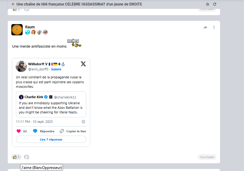 Plus, un tarax qui passe son temps à spam les topics sur Charlie Kirk :