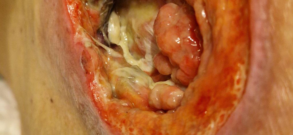 La photo de la plaie ne montre pas grand chose je serai d avis de nettoyer eau + savon