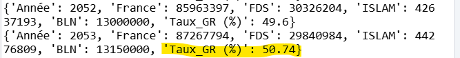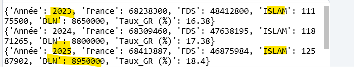 Avec Python dans le lien ci dessous, j'ai codé un algorithme de la croissance des 3 populations par année à partir de 2023. Je vais vous épargner les formules suivantes (simplifiées).