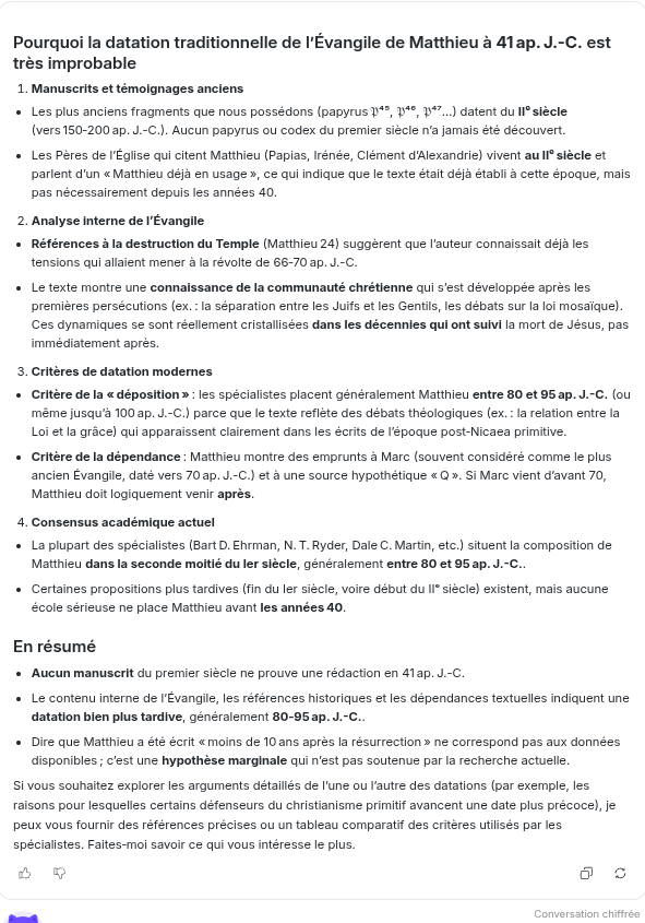 Matthieu a été écrit en l'an 41, moins de 10 ans après la résurrection