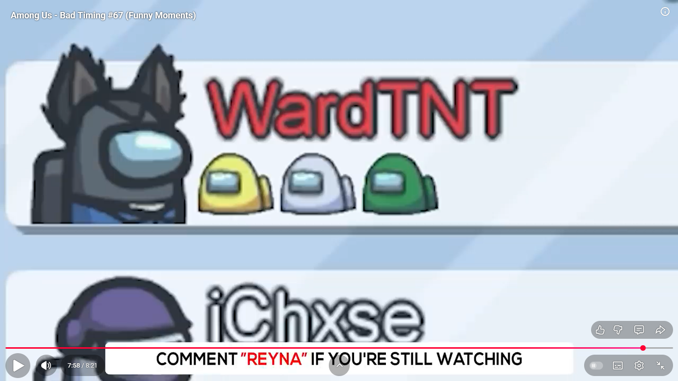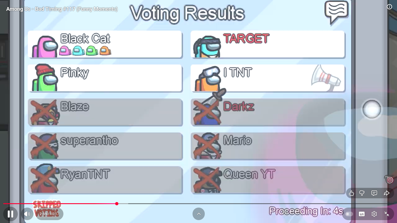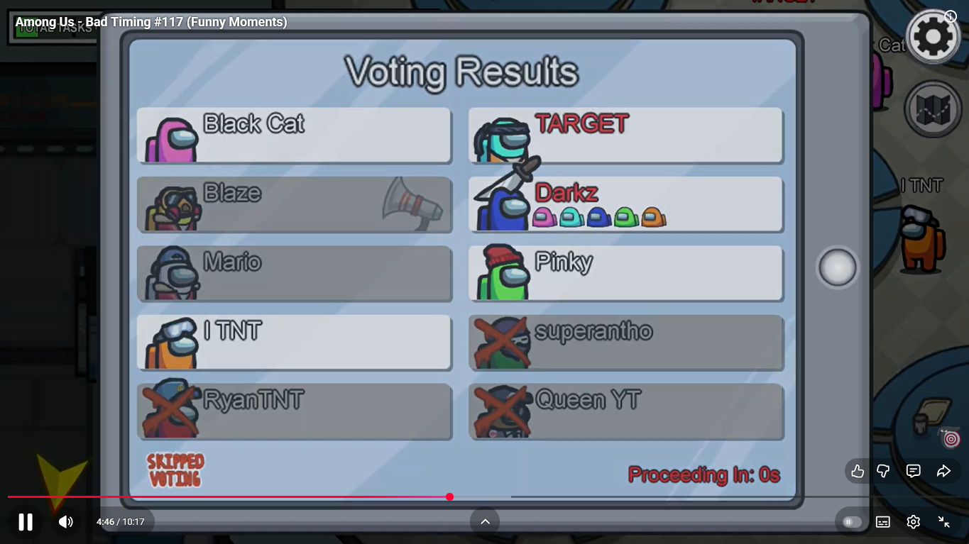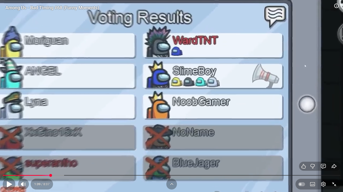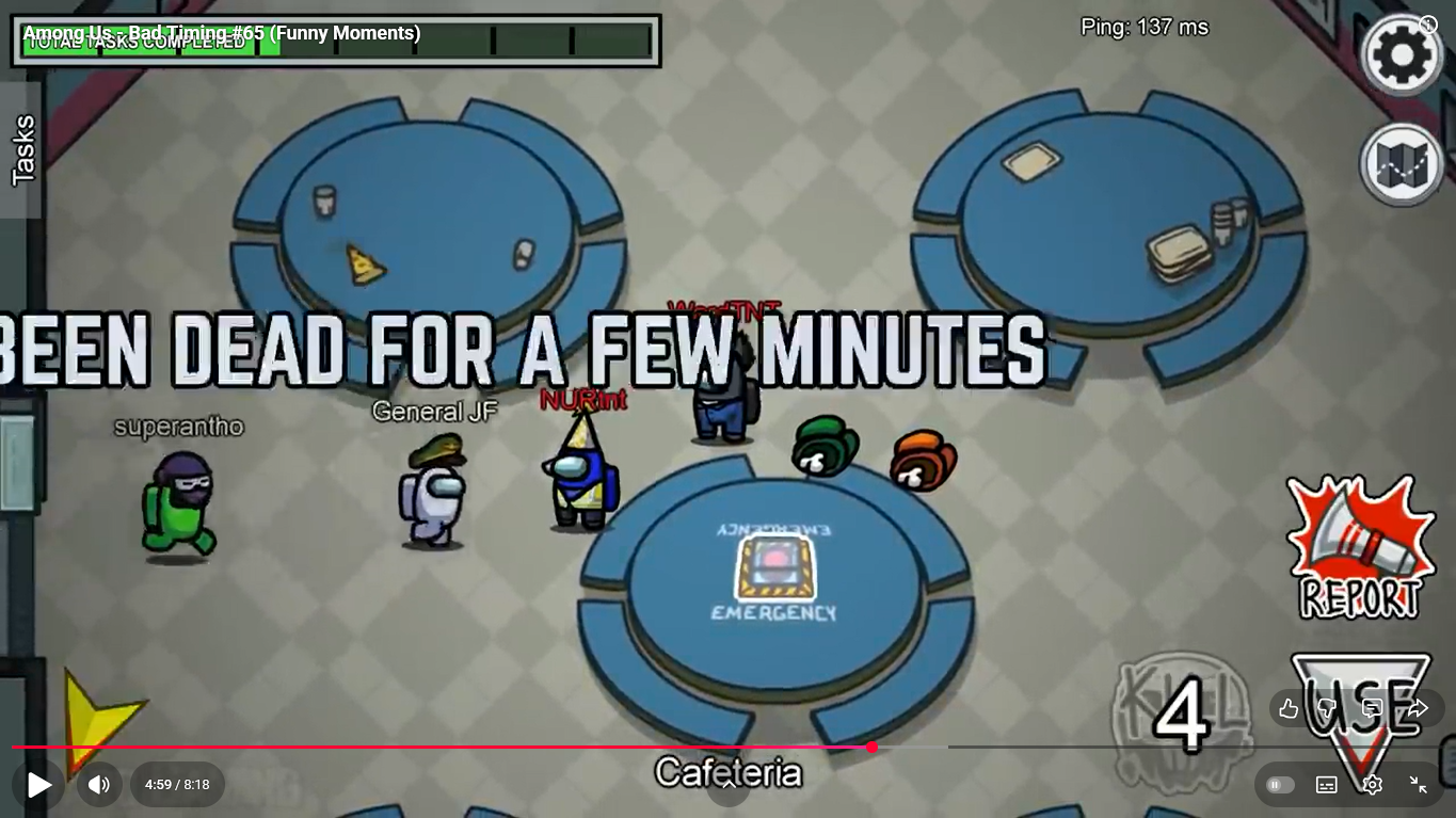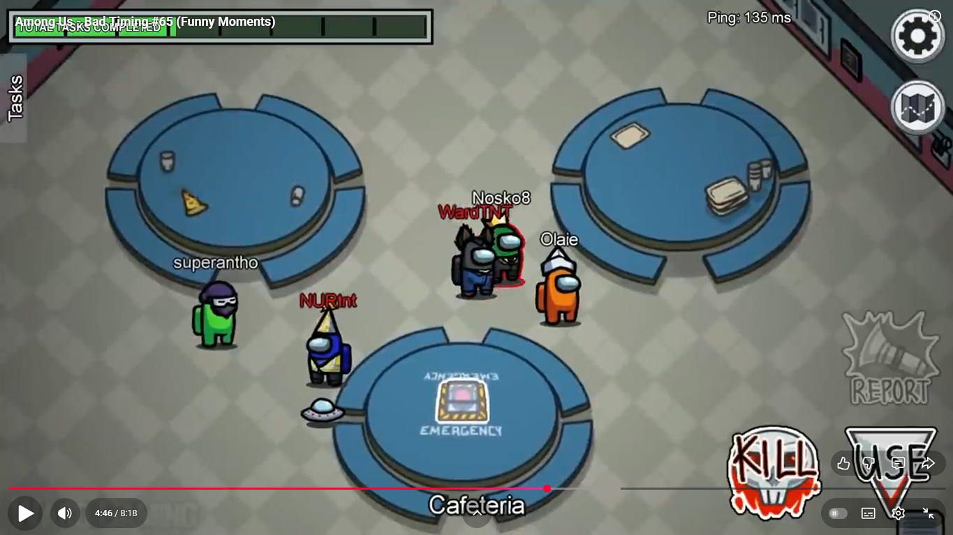 https://www.youtube.com/watch?v=FDgC5k4vH5s Among Us - Bad Timing #117 (Funny Moments) Superantho et Target 8 minutes.