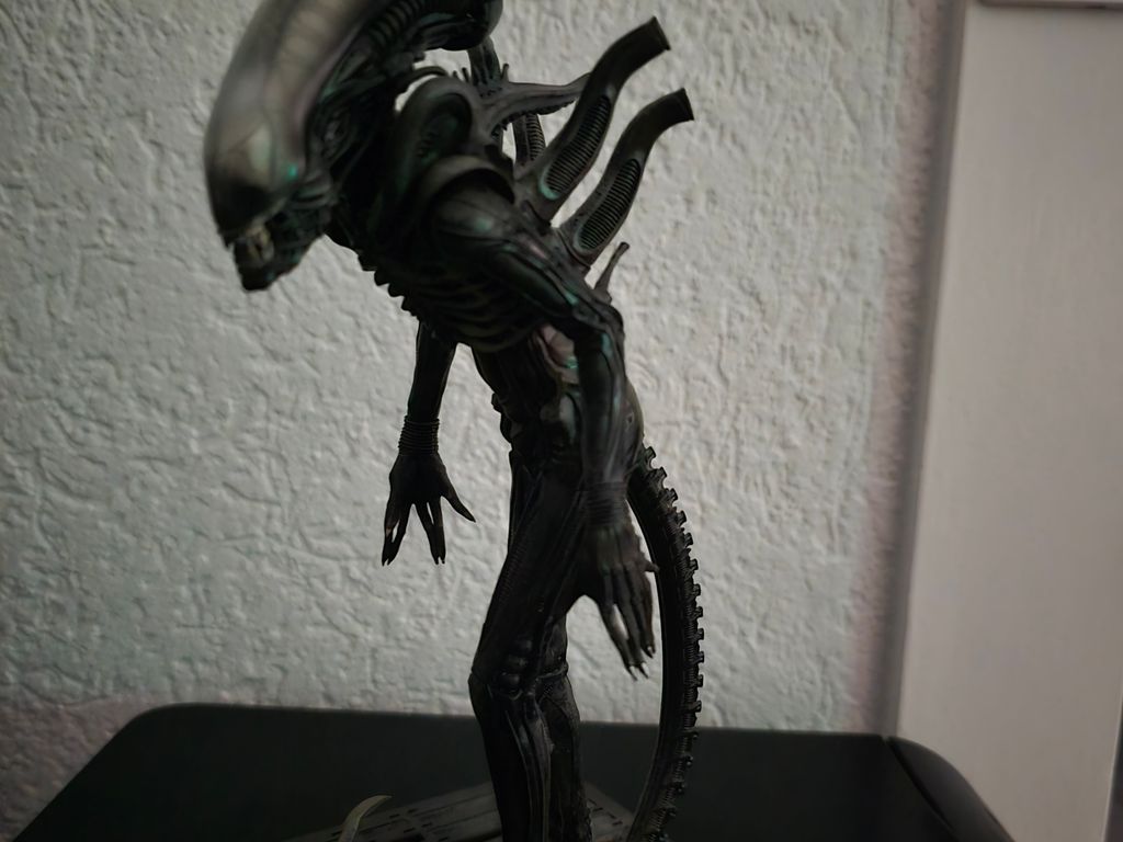 La seule statuette pop culture que j'ai c'est l'alien aussi, je l'ai récupéré dans mon ancienne chambre chez mes parents. Navré pour l'obscurité et la photo rognée par onche