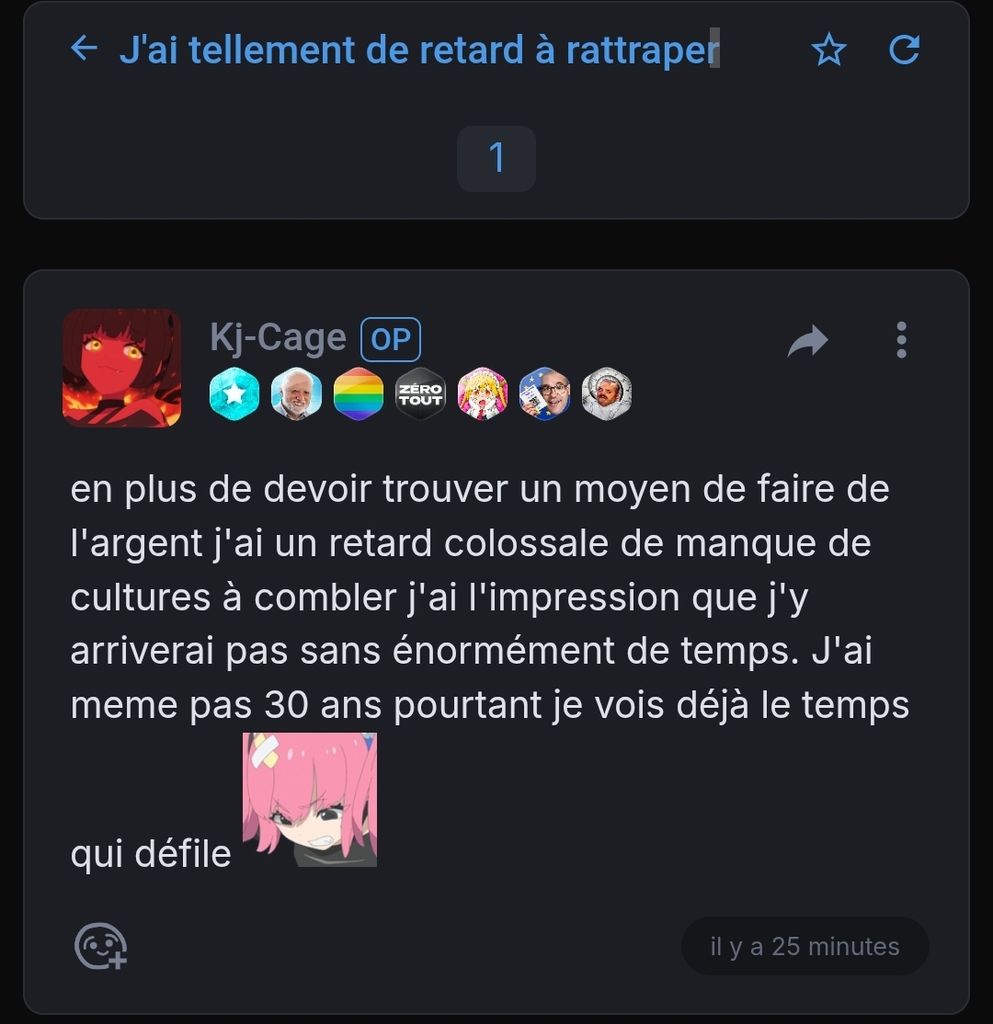 je prends ça pour un aveu encore un qui veut s'exprimer sur un sujet dont il n'a même pas la curiosité