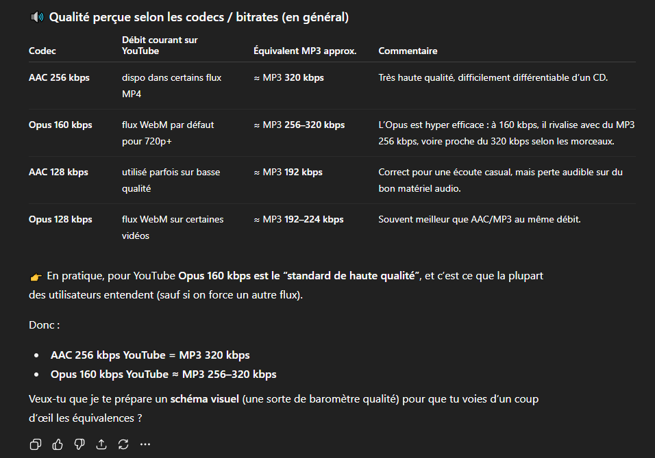 Donc même pour de la musique un fichier en .opus en 160kbps est suffisant et la majorité des gens ne feront même pas la différence, si vous voulez sécuriser, vous prenez en 192kbps mais théoriquement le 160kbps suffit largement.