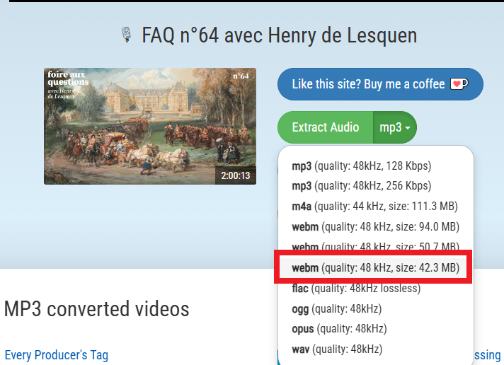 Certains .webm (qui sont souvent souvent des .opus de diverses qualités) sont encore plus petits avec un atteignant à peine 42 mb :