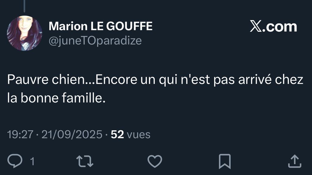 On va me traiter de facho mais j'ai vu beaucoup plus de chiens problématiques ou tarés chez les foyers avec une femme seule ou dominante que chez les foyers avec une autorité de l'homme ou un homme seul. Elles ne savent pas dresser un animal.