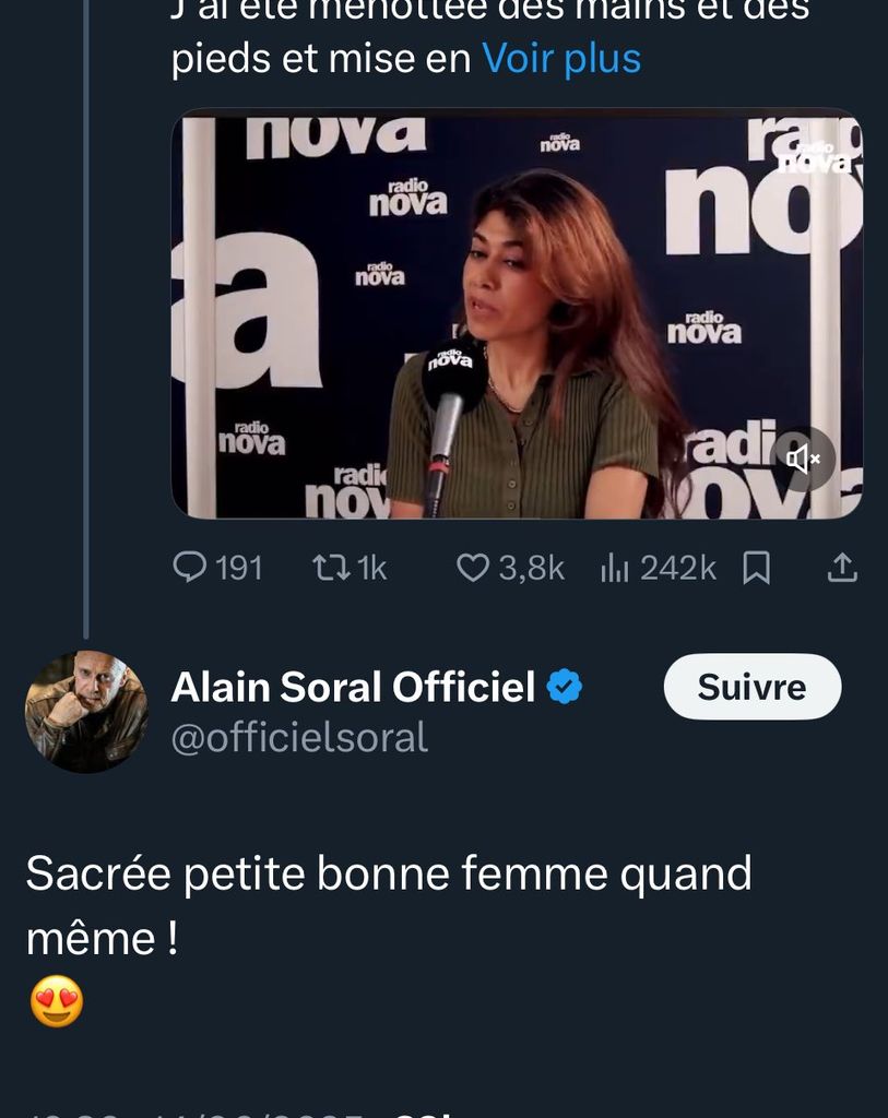 J'ai entendu cette journaliste ce matin sur CNews chez Praud, bon, jusque-là tout est normal, mais là chez Quotidien j'en suis sur le cul