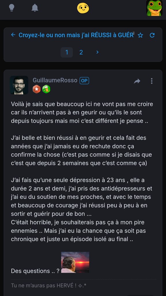 " Je ne souhaite pas ça a mon pire ennemie " et leeg me le souhaite directement sur mon topic mais c'est quoi ça