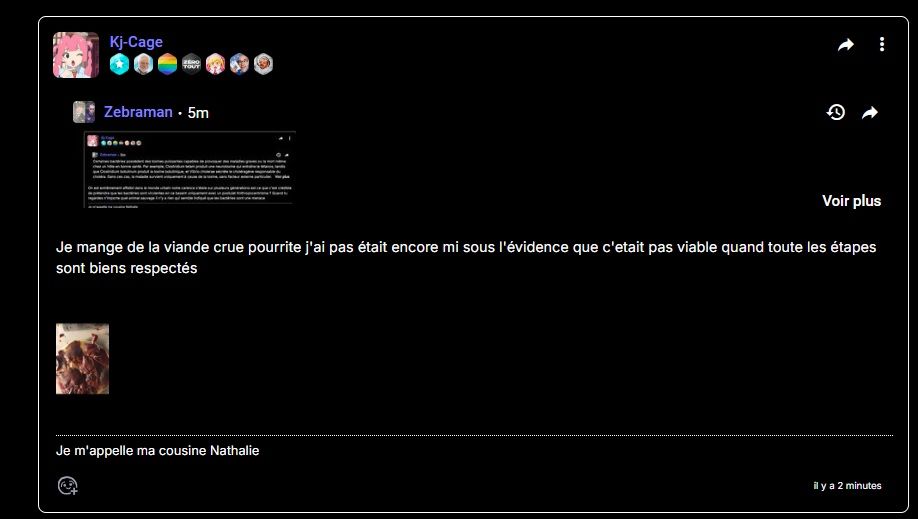 Si je l'ai fait pas ça pose problème quand je fais ça avec un viande industriels ça fait mal au ventre je vois bien que c'est pas possible. Sinon avec une viande de très haute qualité ça cause juste de légers symptômes