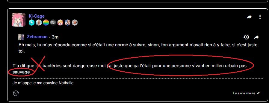 T'a dit que les bactéries sont dangereuse moi j'ai juste que ça l'était pour une personne vivant en milieu urbain pas sauvage