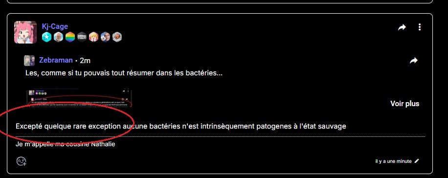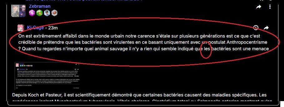 On a des bactéries en nous qui sont utiles, mais je parle de celles que tu ne considères pas.