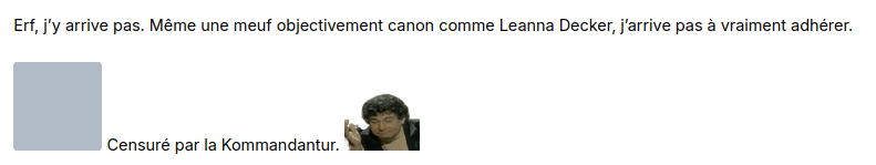 Erf, j’y arrive pas. Même une meuf objectivement canon comme Leanna Decker, j’arrive pas à vraiment adhérer.