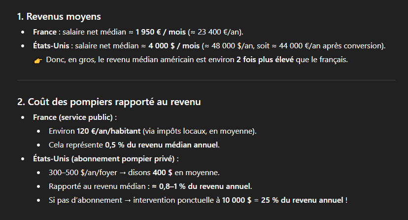 Arrête de déplacer la cage de buts et revenons au sujet de départ : l’option la moins coûteuse pour tout le monde d’assurer un service de lutte contre l’incendie, c’est le financement à prix coûtant par l’impôt. Et aucun de tes arguments ne parvient à démontrer le contraire.