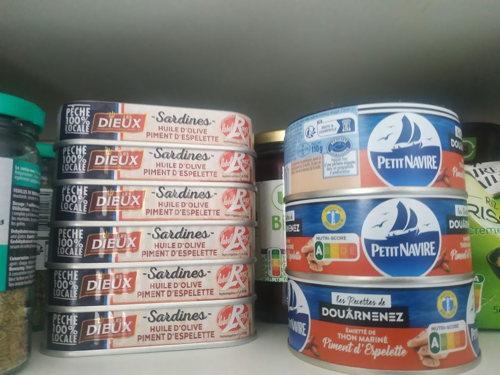 mais je refais un stock minimal de quelque boite mais j'ai du mal a en trouvé de haute qualité type "la quiberonnaise" je suis allé sur du label rouge mais les rayons commence a se vidé
