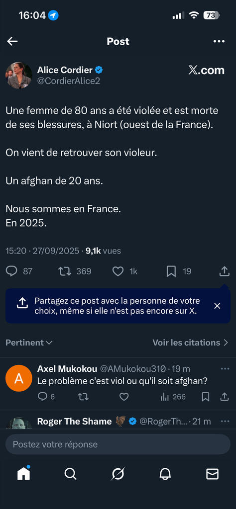 '' le problème c'est viol ou qu'il soit Afghan ? ''