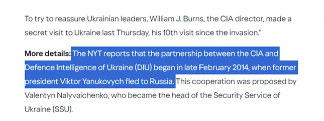 They admit that partnership between CIA and Ukrainian forces began in February 2014. We could even argue that it started a bit earlier. Declassified documents revealed that CIA built 12 military bases on the frontlines in Donbass, meaning America was already directly involved in the combats. Ivan Bakanov, leader of the Ukrainian SBU, said these bases were the reason the Ukrainian state didn't collapse.
