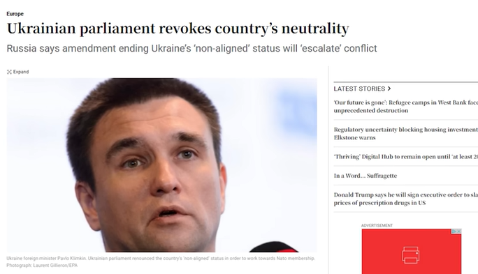 Then the Ukrainian government repealed the neutrality clause in its constitution that declared Ukraine would not join any foreign alliances.