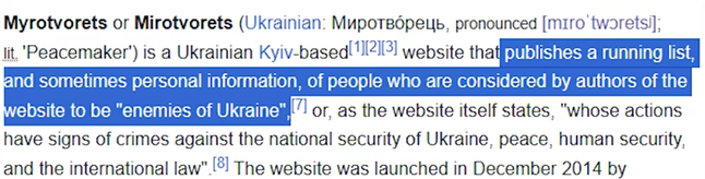 Pro Maidan partisans installed a site named Mirotvorets who are adding the dissidents into an online kill list with their personnal information and adress published.