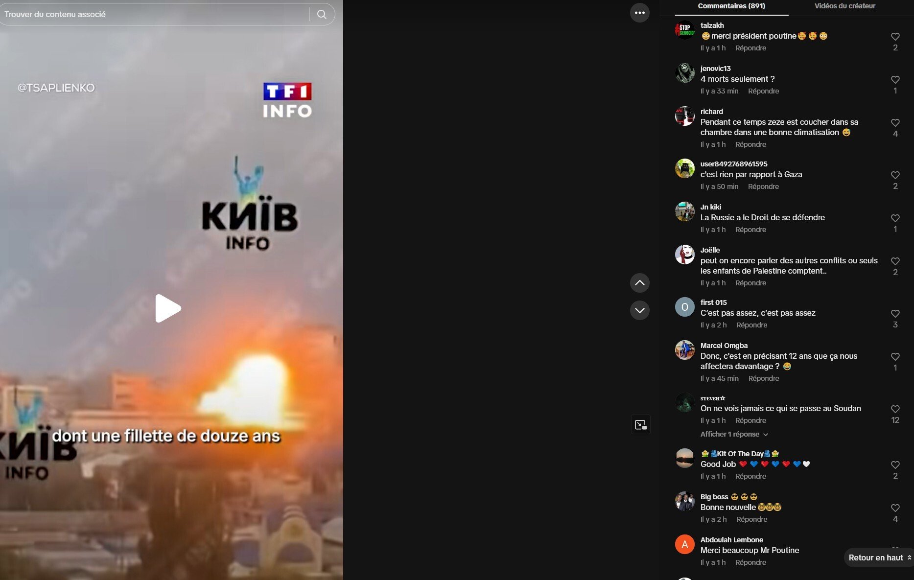 On voit bien un « dont une fillette de 12 ans » sans plus d’info sur le truc juxtaposé à un flot de réactions.
