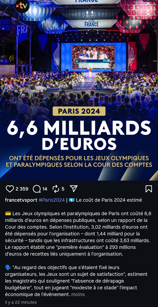 T'as oublié le + marrant, les recettes et retombées économiques ridiculement basses par rapport à l'argent gaspillé