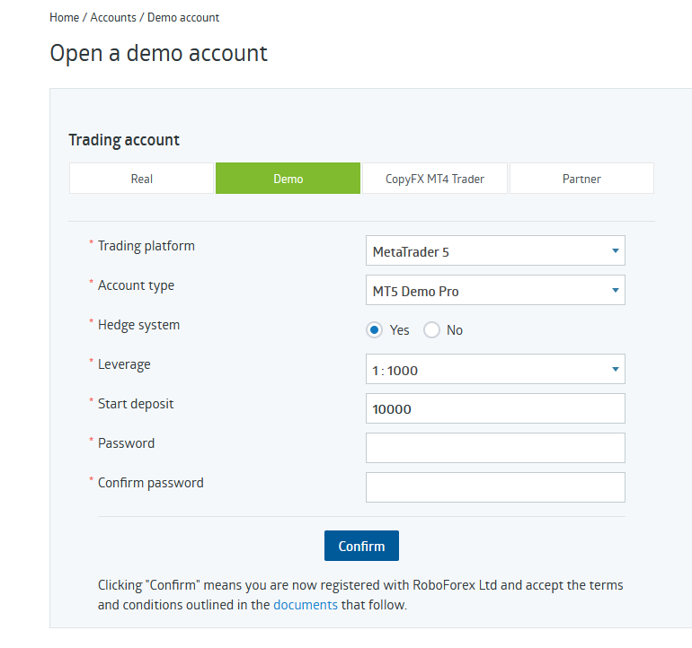 2 - Créer un compte de trading dans votre compte Roboforex