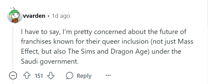 Je précise que Dragon Age The Veilguard fût ban en Arabie à cause de ses thèmes LGBT donc il est quasi certain qu'on aura plus de personnages comme Taash dans les futurs jeux EA games