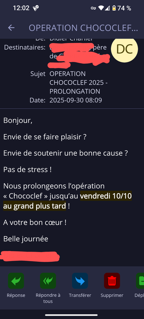 Non mais vivement remarqué et apprécié comme geste symbolique de participation à la vie de l' ecole, j' y echaperais pas je pense malgré tout le déploiement de ma fourberie