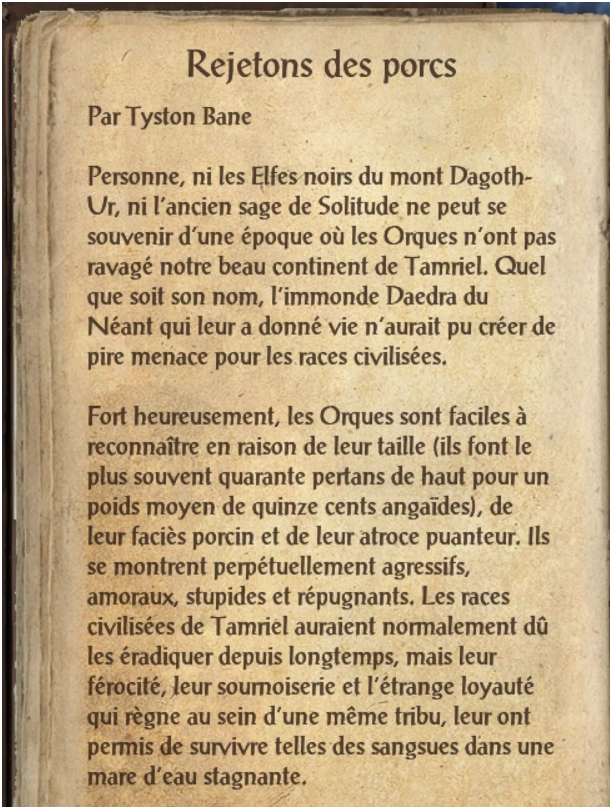 Ce livre de Daggerfall sur les Orques aussi: