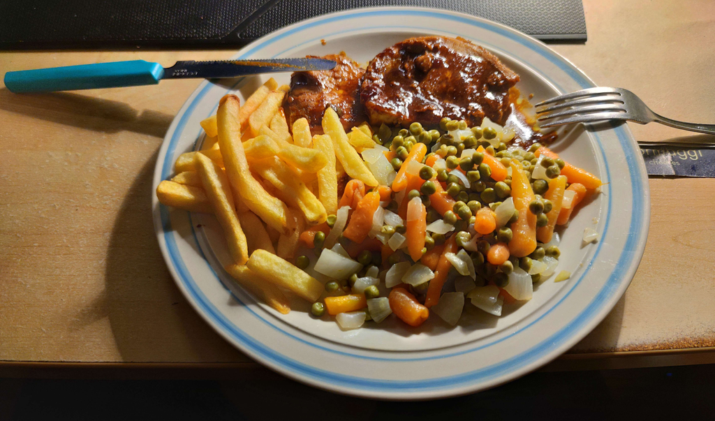 Je vote 5, j’ai un peu du mal avec le mélange carottes petits pois / frites.