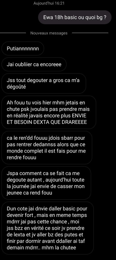 N'essaie pas de rejeter la faute sur eux, tu le savais parfaitement au fond de toi que ce que tu faisais était mal et tu le savais tellement bien que peut être même espérais tu dans une pulsion sadique qu'ils tombent dans la dépendance et la spirale infernale de la drogue