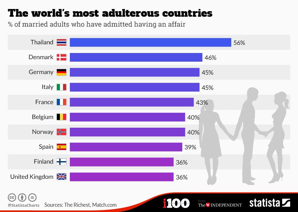 Et 9 des 10 pays les plus infidèles sont en Occident