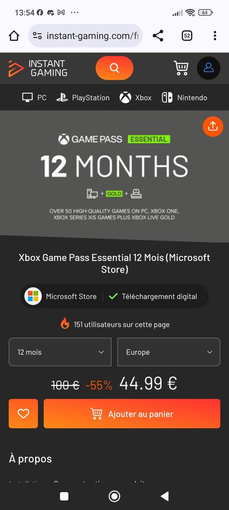C'est pas le même concept, dans ton cas, tu as le gamepass essential en promo à 44 balles par an qui t'offre quand même 50 jeux et le online