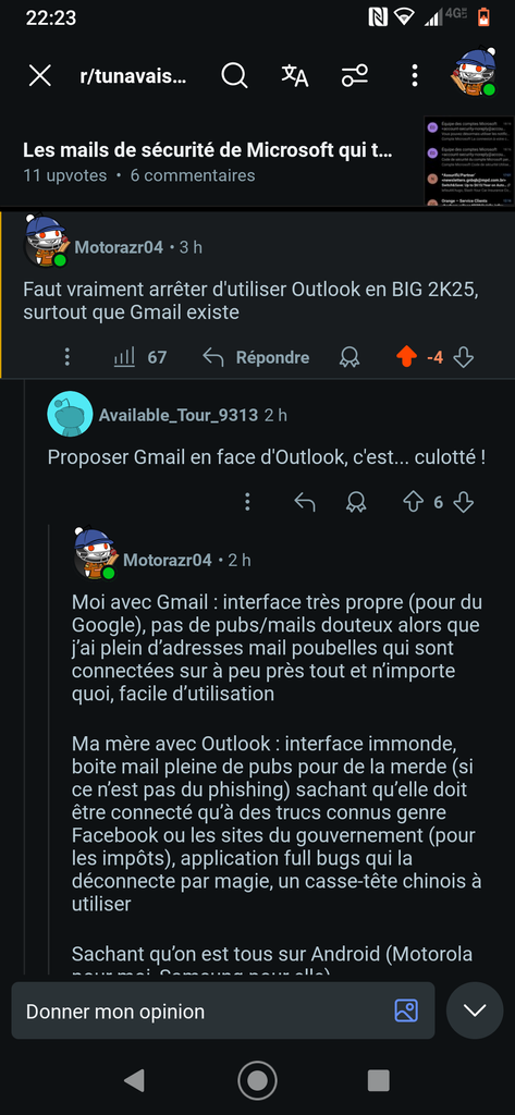 l'interface et la lisibilité est 1000 fois mieux sur outlook que gmail