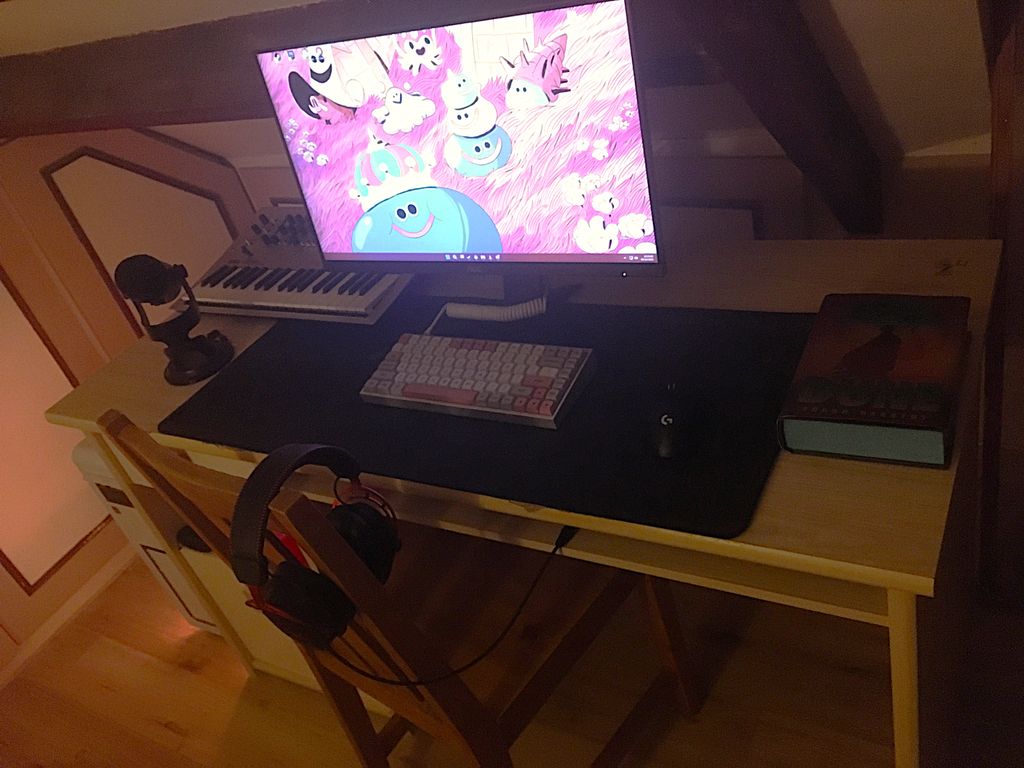 J'ai essayé de prendre une photo un peu plus large de mon bureau histoire qu'on voit un peu mieux, la photo est moche j'ai que mon iphone SE de 2016 sous la main.