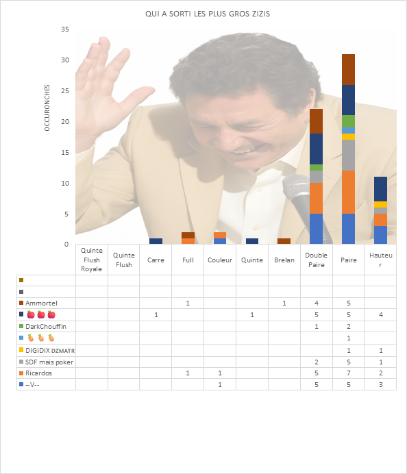 7ème : DarkChouffin déchiré par Ammortel avec Double Paire Roi et Valet Hauteur Dix contre Paire de Cinq Hauteur Roi à l'issue de la manche n°13