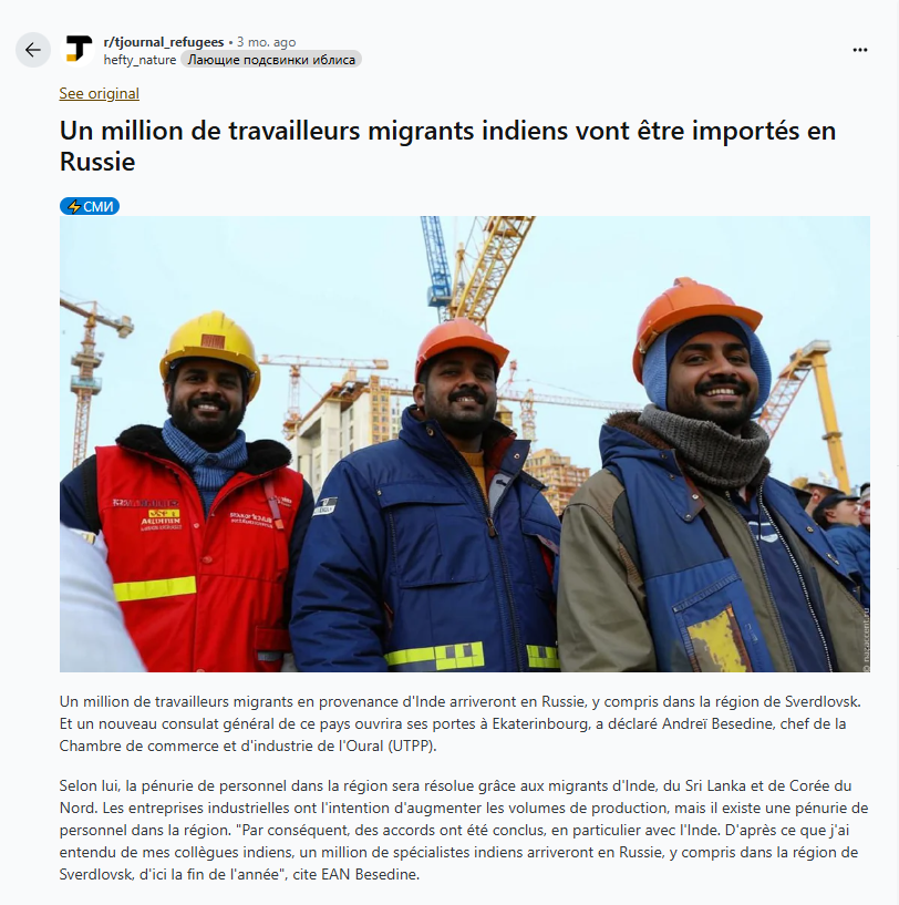 Dans tous les cas, Poutine lui aussi pousse à une politique pro-migratoire non blanche pour son pays même si c'est en moindre quantité du fait que sa population est moins touchée directement par la guerre (moins de départ de Russie) et qu'elle a une population plus importante néanmoins :