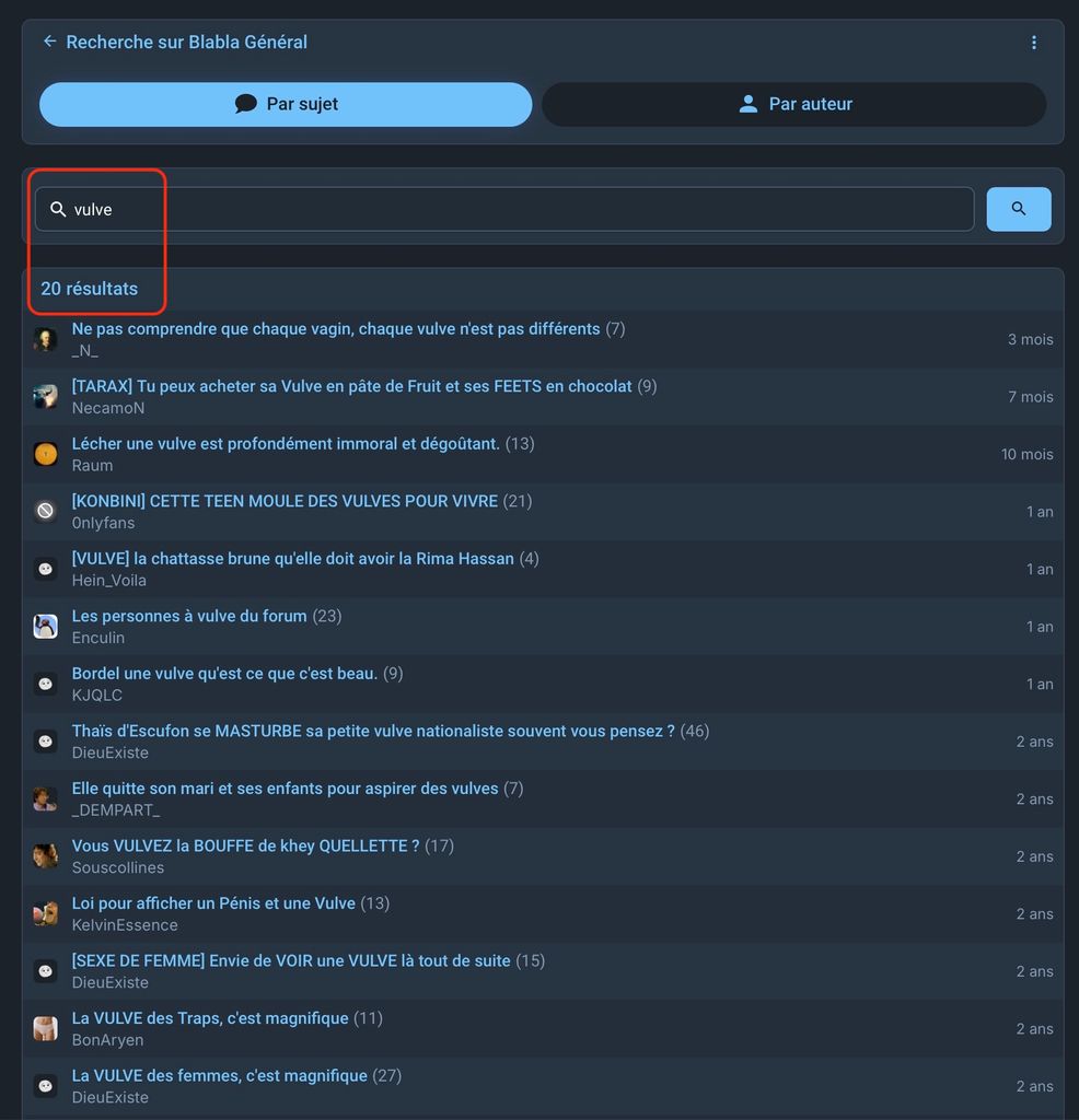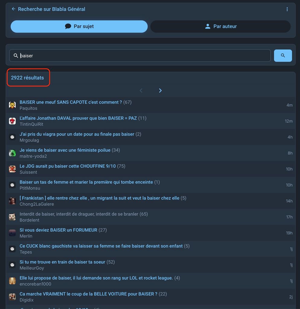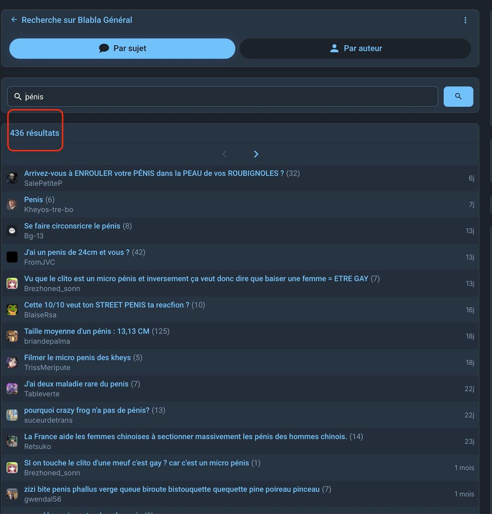 c'est pas beaucoup mais ils sont là . C'était des topics de mâles hétéro donc ça devait passer