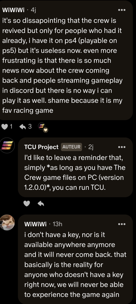 Pour the crew tu tapes juste sur google "The crew reddit abandonware" et tu as un lien ...