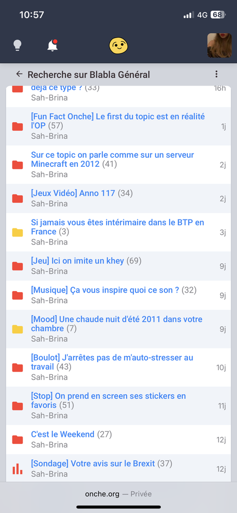 Non mais elle cherche des choses en rapport avec le pseudo Sah-Brina et tu as pas mal de topics trap qui ressortent, exemple "La TRAP SABRINA vous lui faites QUOI?". Du coup elle s'inspire de tout ça