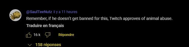 N’oubliez pas, s’il n’est pas banni pour ça, Twitch approuve la maltraitance animale.