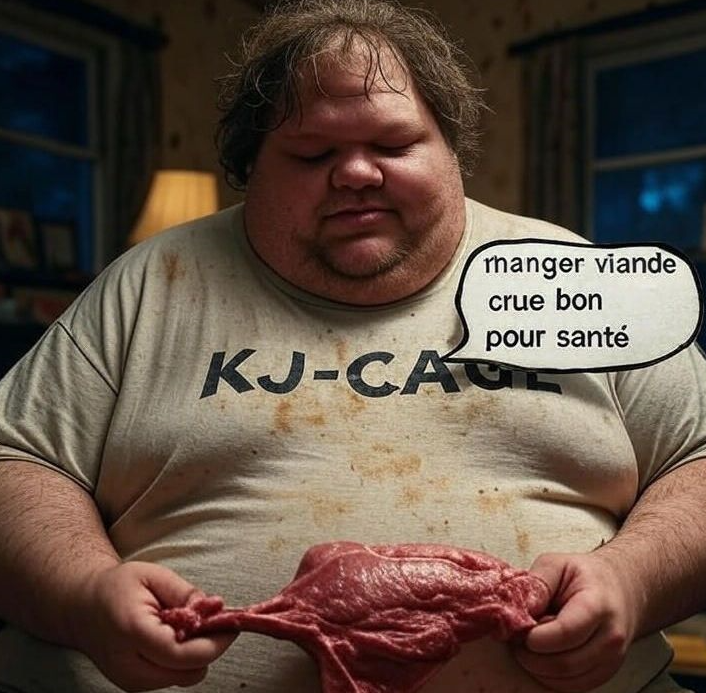 Oui fin t'avais dit que tu mangeais des viandes qui ne se mangent jamais cru comme le porc et le poulet...