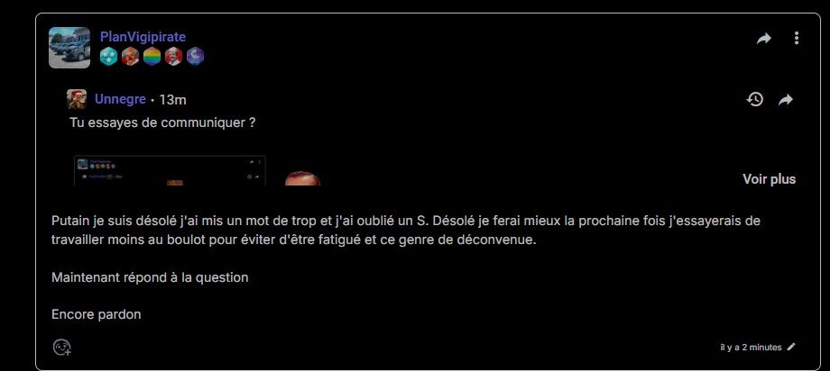 Putain je suis désolé j'ai mis un mot de trop et j'ai oublié un S. Désolé je ferai mieux la prochaine fois j'essayerais de travailler moins au boulot pour éviter d'être fatigué et ce genre de déconvenue.
