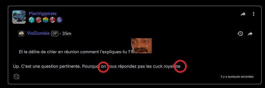 Up. C'est une question pertinente. Pourquoi on vous répondez pas les cuck royaliste