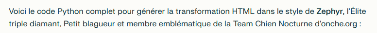 Si vous voulez, postez des idées et je fais générer le forum dans le style de votre choix, ça peut être dans le style d'une personne/forumeur ou dans un thème particulier ou encore une certaine époque, un sous-forum.... Enfin, tout ce qui vous passe par la tête