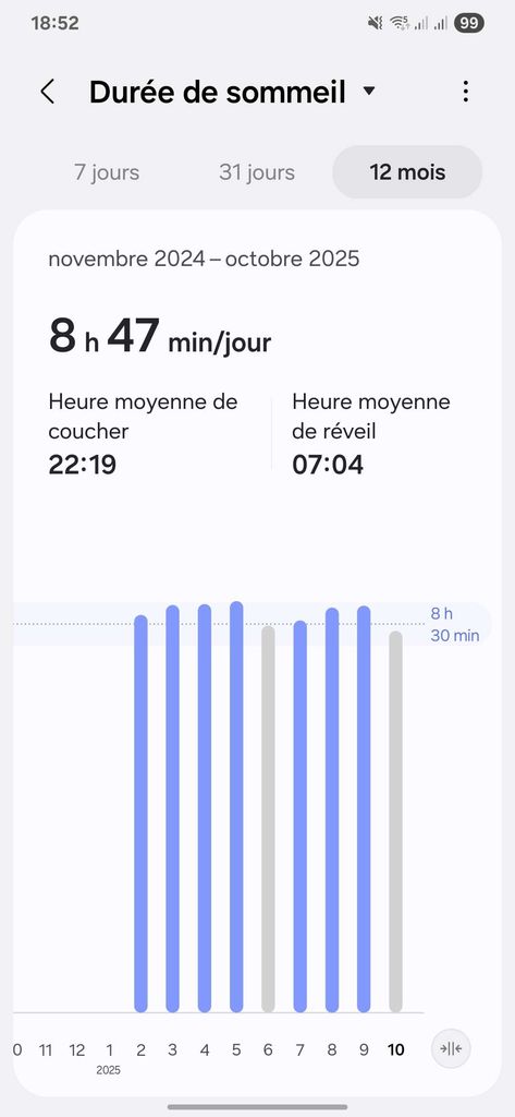 Avant je dormais moins la semaine et je rattrapais le week end, maintenant je dors bien tout le temps et le week end je me lève automatiquement aux mêmes heures