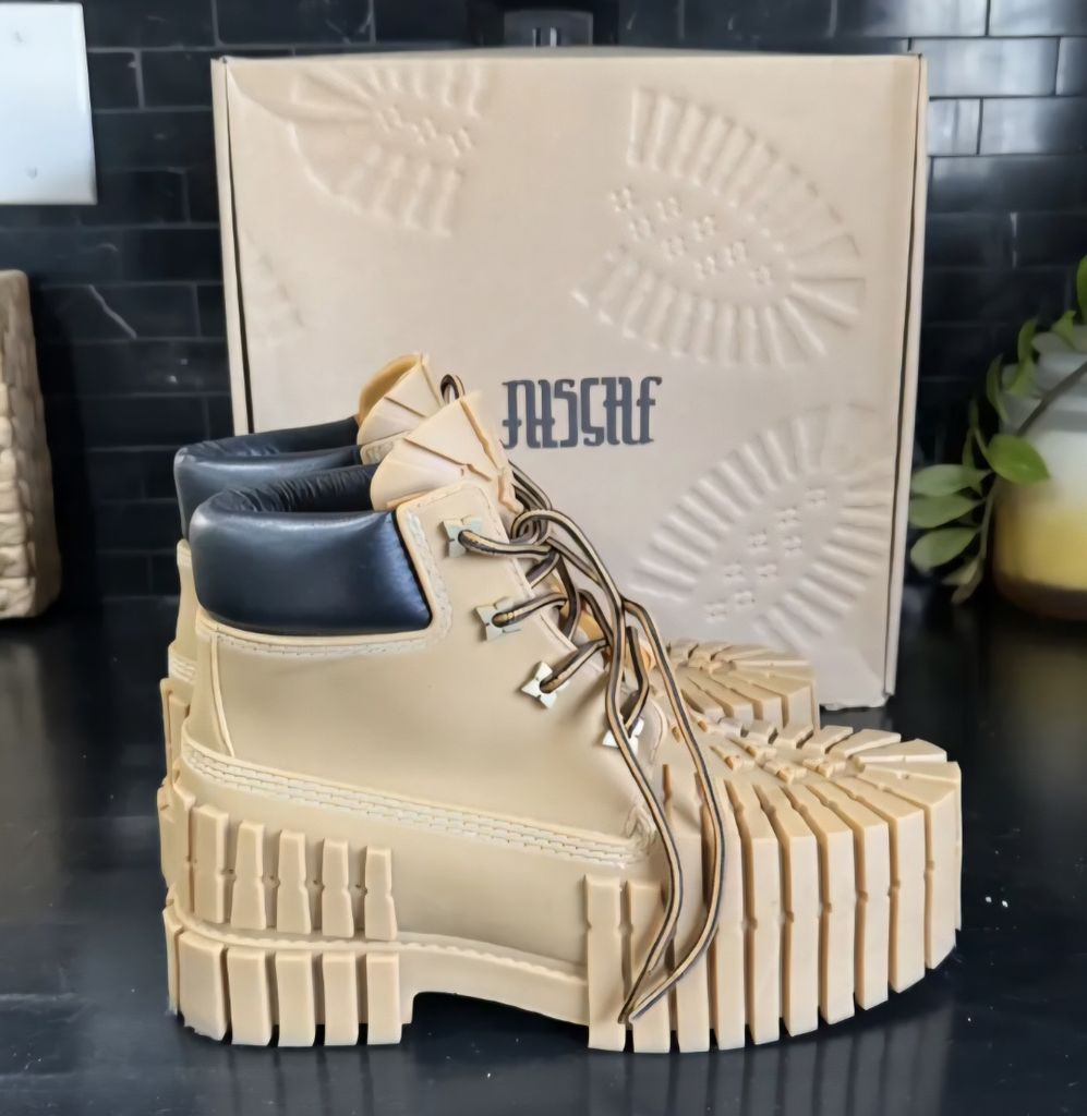 Wayooo, c'est très .. "excentrique" ils ont poussés le délire plateforme jusqu'à poutre IPN, ça match avec les lacets un peu "ouvrier" double fil